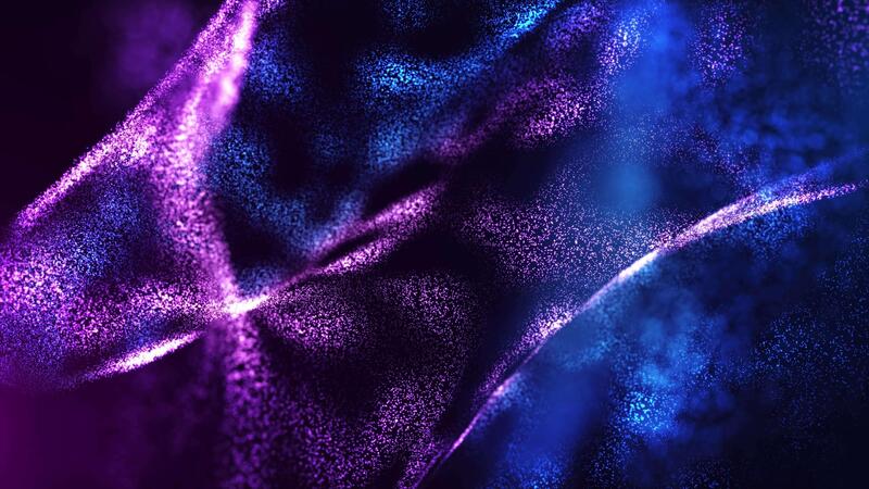Abstract purple and blue digital dynamic particle waves with motion light background, data flow, cyber technology. 3d rendering. Seamless loop 4k. Pro Video