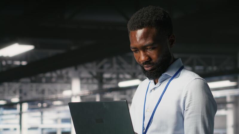 IT experts on data center industrial platform pleased by neural network outputs after completing AI software updates. Cheerful system administrators finetuning server rig configurations, camera B Pro Video