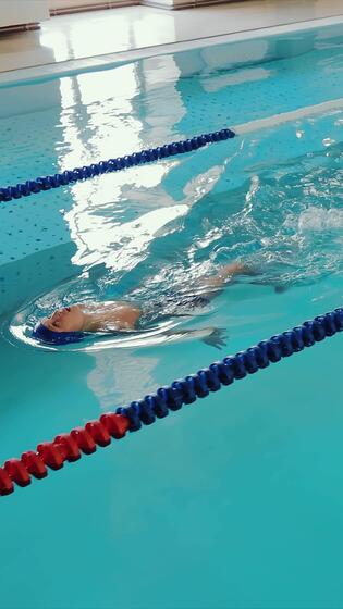 Swimmer splashing in pool lane, Swimmer creating splashes while practicing in a pool lane Pro Video