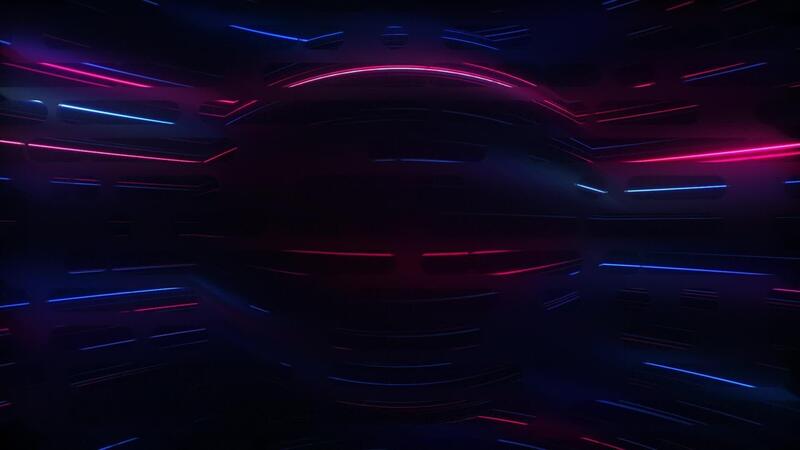 Technology background with glowing red and blue neon light beams and blinking digital data lights. Data visualization or network server concept. Sleek high-tech looping background. Free Video