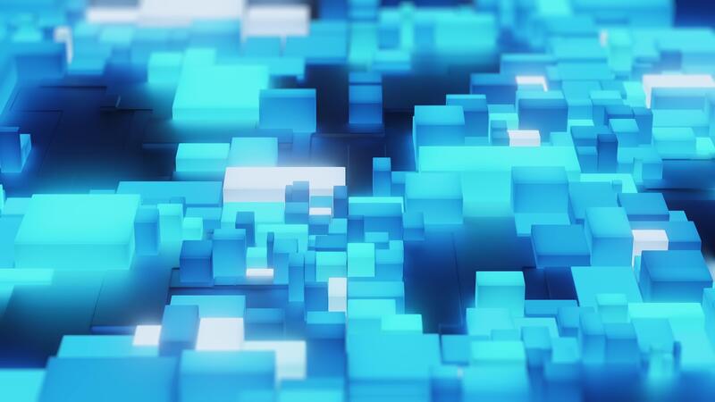 Abstract technological background with glowing blue cubes and rectangles, symbolizing data processing and digital connectivity in a modern, clean style. Pro Video