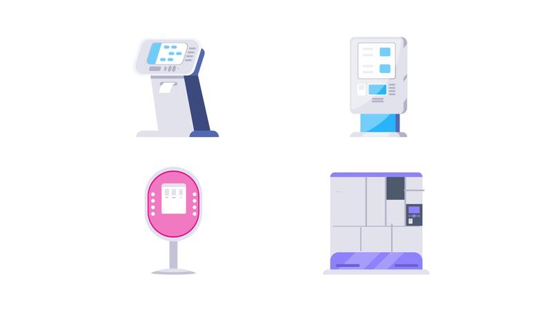 Automated Services Kiosk and Locker Displaying Information on White and Green Screen Background Pro Video