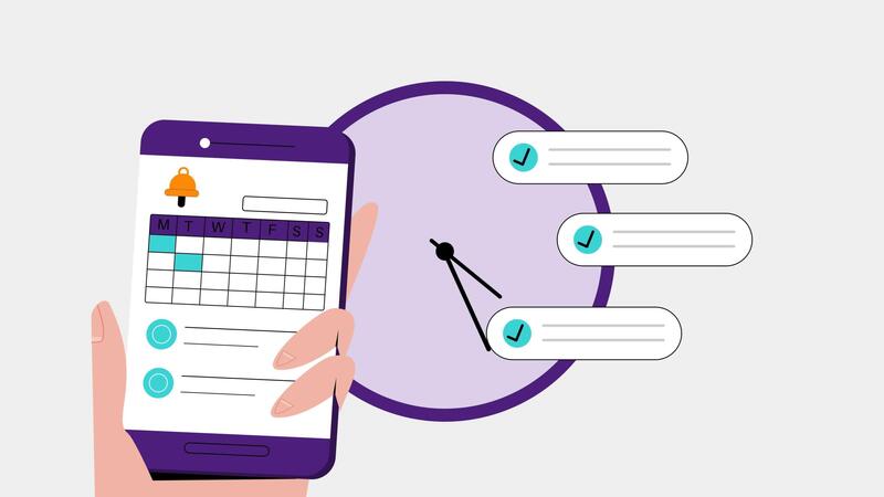 2D animation of managing time using a productivity app, illustrating scheduling and effective time management Pro Video