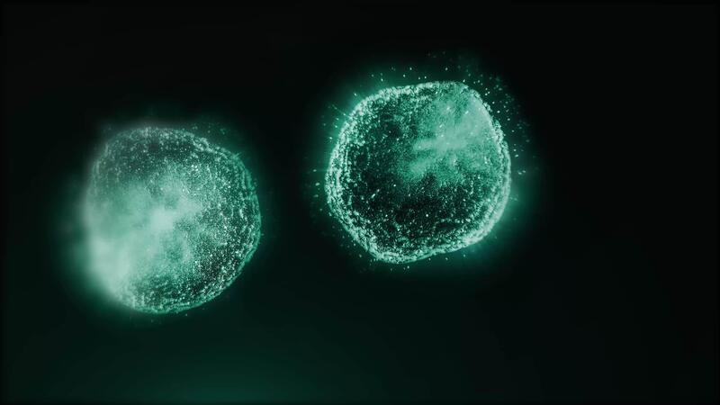 Study of cell division through a microscope. Abstract animation of dark blue cells for any medical, technological and similar projects. Pro Video