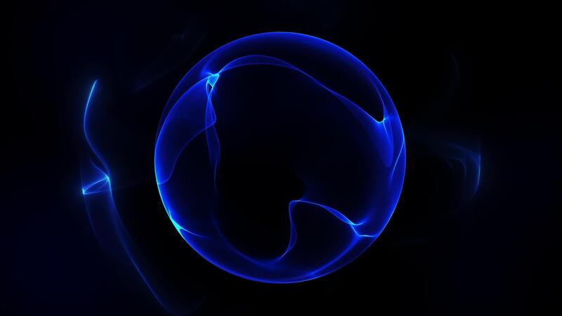 The flow of a blue magical glowing sphere of waves of energy against a circular vortex of fractals of space. Futuristic core rotating on the sci fi fantasy dark abstract background. 4k 60 fps looped. Pro Video