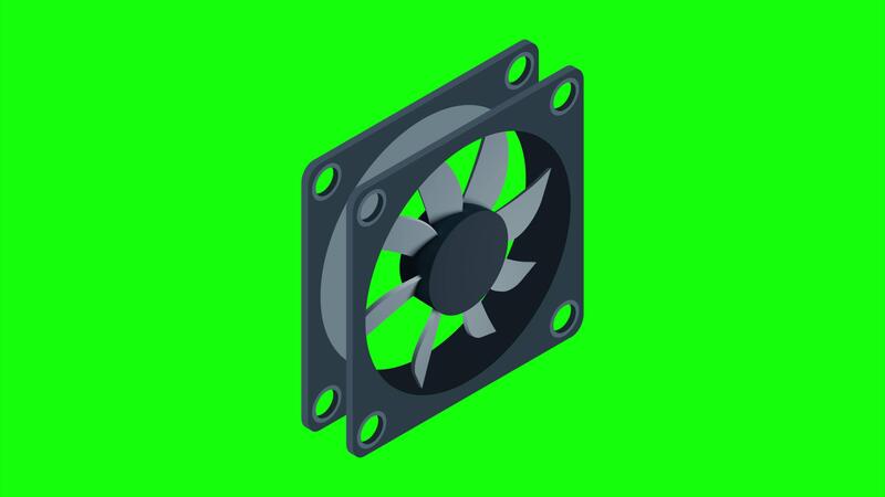 Isometric computer fan animation. Computer fan cooler. Isometric of PC case fan. Computer hardware components. 4K. Pro Video