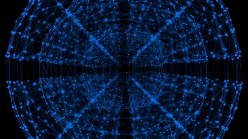 Royal blue color lines and dots plexus 3d sphere depth of field modern design dark loop able geometrical background Free Video