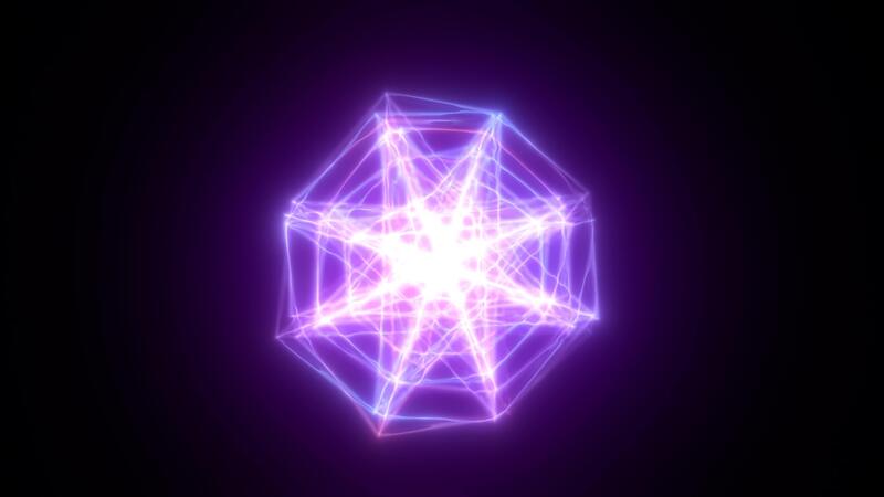 Luminous violet geometric shape with intense core glow and dynamic light webs on a dark background Free Video