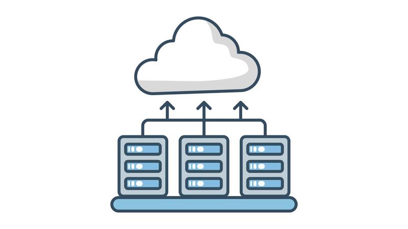 Servers connected to a cloud via upward arrows indicating data transmission or cloud computing processes looping animation Pro Video