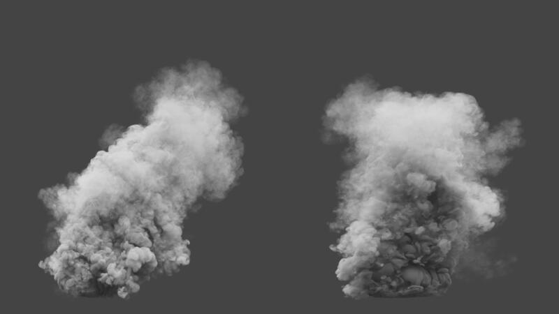 Set of two variations of a white smoke explosion. After the explosion animation, smoke continues to be emitted from the explosion point until the end of the . File contains Alpha Channel. Pro Video