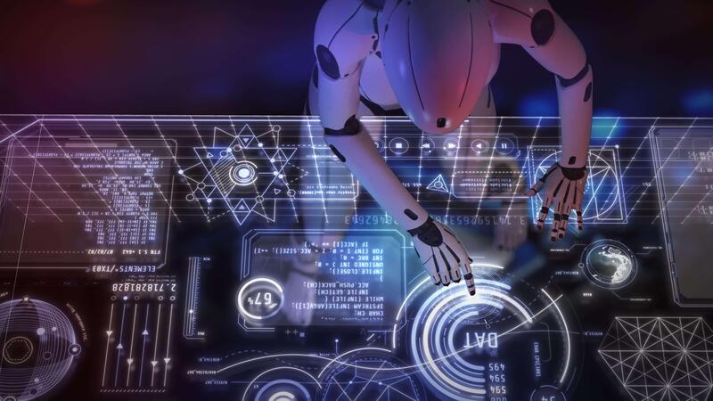 Robot using futuristic touchscreen interface with data analysis Pro Video