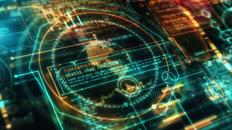 Futuristic global digital display showing programming code and data analysis Pro Video