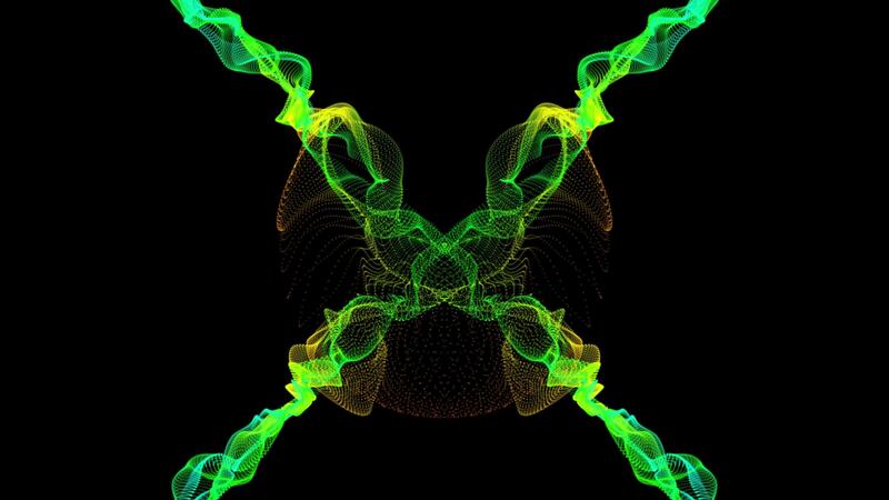 Dynamic Abstract Particle Waves Symmetrical Green and Yellow Digital Art Motion Background Free Video