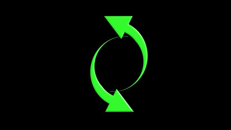 Green circular arrow animation on black background, rotating smoothly in loop. Ideal for loading icons, web UI, or recycling concepts. Free Video