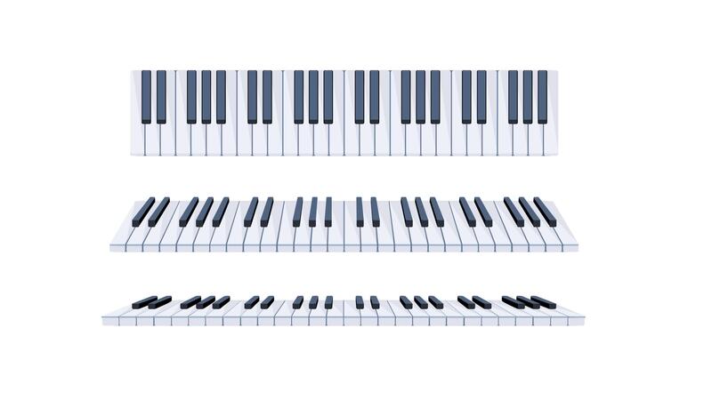 Synthesizer keyboard changing and rotating on different backgrounds Pro Video
