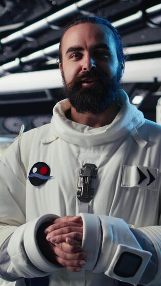 Vertical Astronaut monitoring life support systems before stepping out for scheduled operations outside space station. Cosmonaut verifying mission parameters after landing on red planet, camera A Pro Video