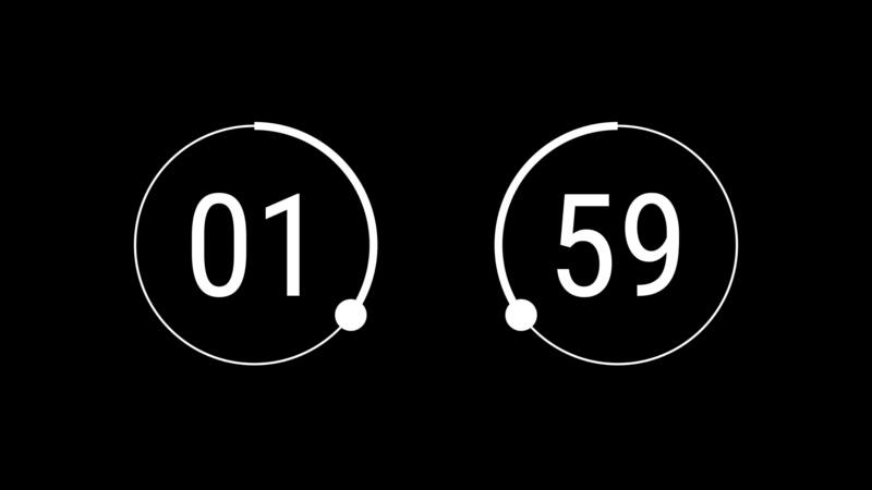 Counting 60 seconds in circle loop motion graphic on transparent background. One minute timer countdown and count up animated with alpha channel. Clock, counter, white. Pro Video