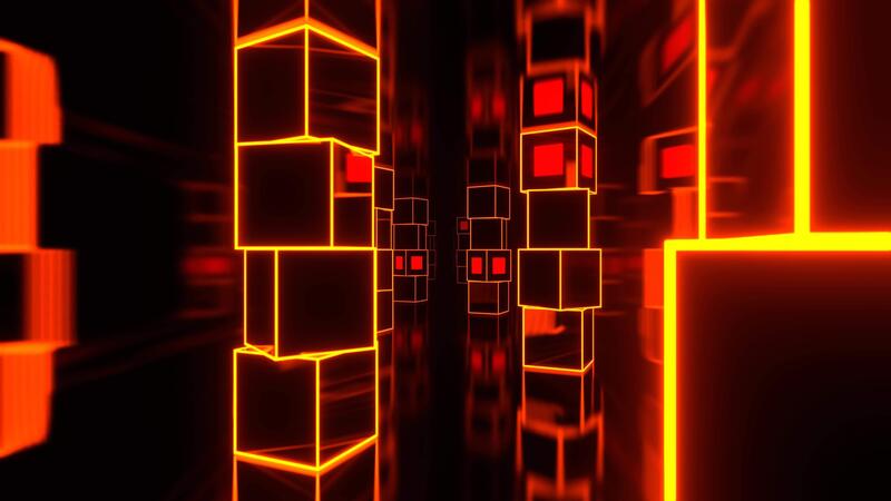 Orange and Red Futuristic Strobe Corridor with Abstract Cube Columns Background VJ Loop in 4K Free Video