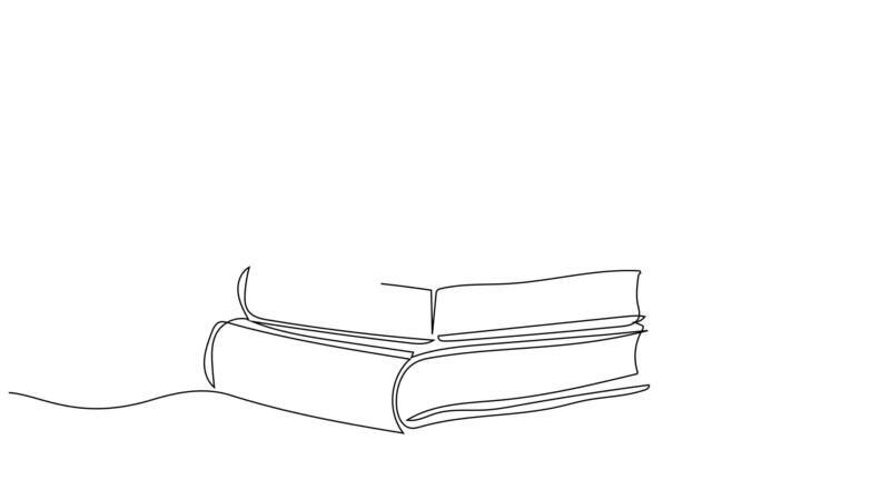 Animated self-drawn one continuous line drawing of a stack of books on a white background. Learn and study print. Education school poster. Full length single line animation Pro Video