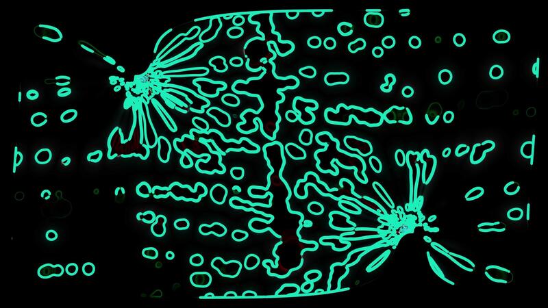 Abstract Digital Animation Evolving Cyan Shapes, Dynamic Distortion, and Glowing Particles on Black Background Free Video
