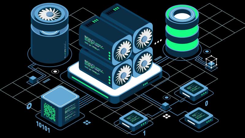 Isometric blockchain animation. Isometric cryptocurrency. Platform creation of digital currency. Big data technology in isometric. Transparent background with alpha channel. Pro Video