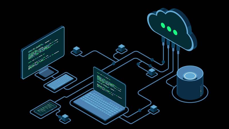 Cloud technology computing animation. Modern cloud technology. Data center isometric concept. Isometric cloud technology with datacenter. Web hosting concept. Transparent background with alpha Pro Video