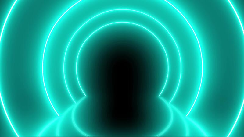 Looping curved tunnel animation with glowing cyan neon lights. Features a clean and futuristic look, ideal for sci-fi interfaces, VJ visuals, or abstract motion backgrounds. Pro Video
