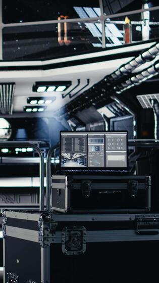 Vertical Chroma key monitor assisting orbit station astronauts in performing routine maintenance. Isolated screen display in spaceship used for performing routine maintenance and doing mission analysis Pro Video