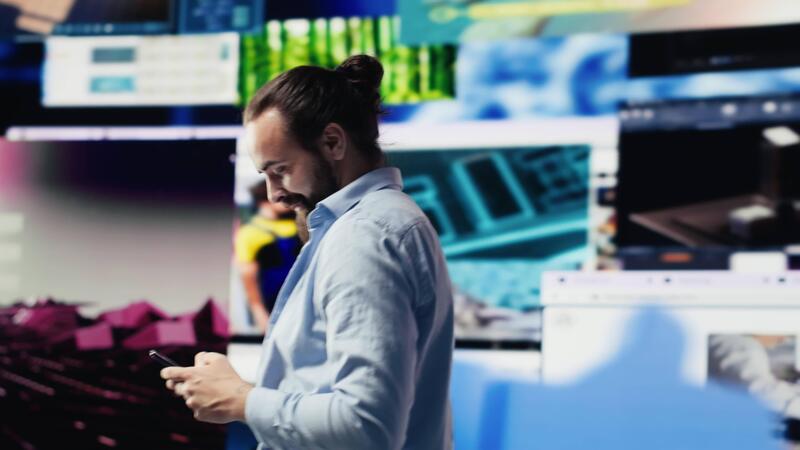High tech web lifestyle of an internet user checking real time notifications, enjoying interaction with followers and posting creative content in a modern social network connection. Camera A. Pro Video