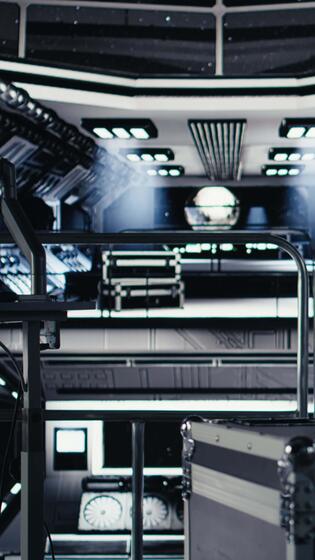Vertical Laptop in orbit shuttle showing dashboard tracking thermal stability and core performance during flight. Notebook display presenting key spaceship engine readouts analytics Pro Video