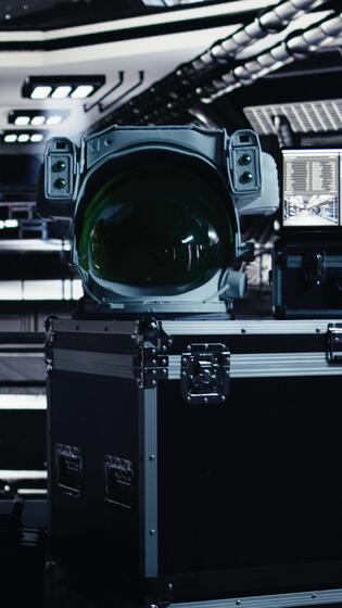 Vertical Laptop inside high tech spaceship cockpit displaying Mars planetary surface analytics. Notebook in orbit station shows performance dashboard during cosmic journey to red planet Pro Video