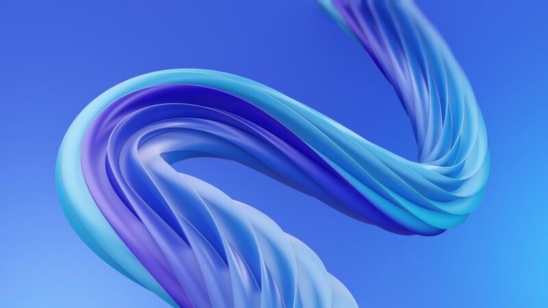 A close-up view of a smooth, glossy 3D rendered abstract shape twisting and flowing dynamically against a vibrant blue backdrop. Pro Video
