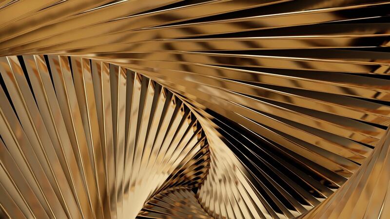 An abstract background featuring a swirling, metallic golden pattern with reflective blades and a dark background, creating a luxurious and futuristic visual effect. Pro Video