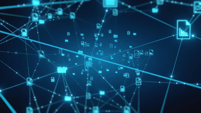 Abstract network background showing glowing nodes connected by lines, representing digital document and data management, cloud storage, and technology concepts. Pro Video