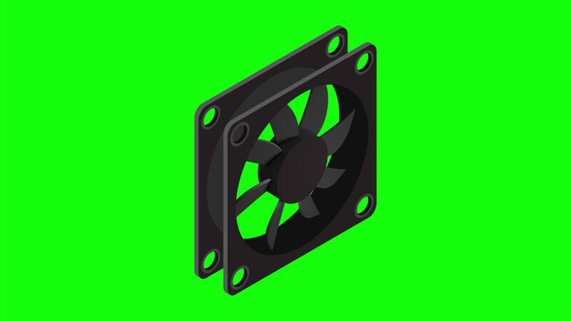 Isometric computer fan animation. Computer fan cooler. Isometric of PC case fan. Computer hardware components Pro Video