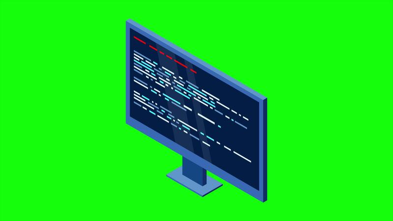 Isometric monitor animation. Computer monitor isometric desktop. Modern monitor. 4K animated in isometric style. Pro Video