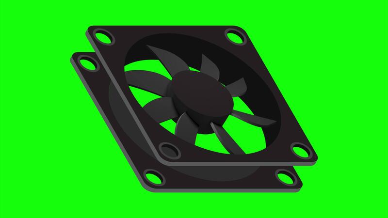Isometric computer fan animation. Computer fan cooler. Isometric of PC case fan. Computer hardware components. Pro Video