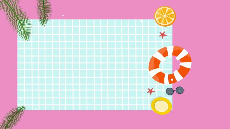 Top view of summer pool scene with pink background and floating items Pro Video
