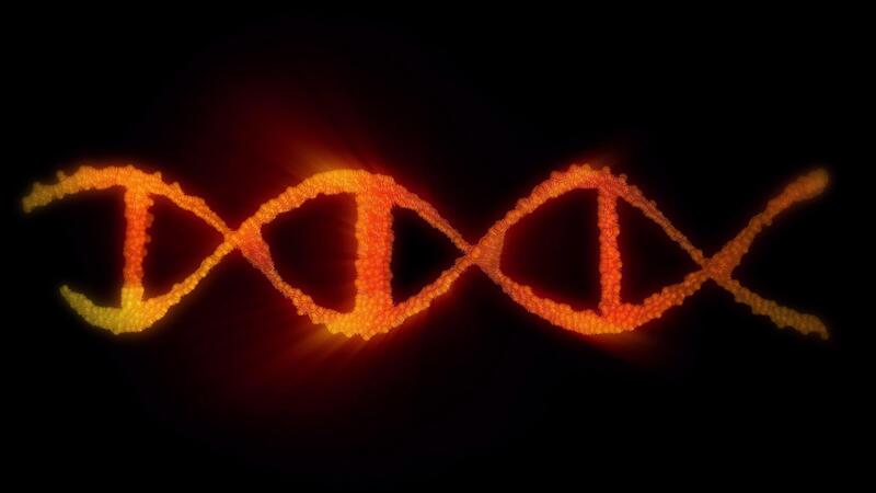 Animation of the DNA double helix structure in gold and red, showing its twisted ladder structure in looping motion. Pro Video