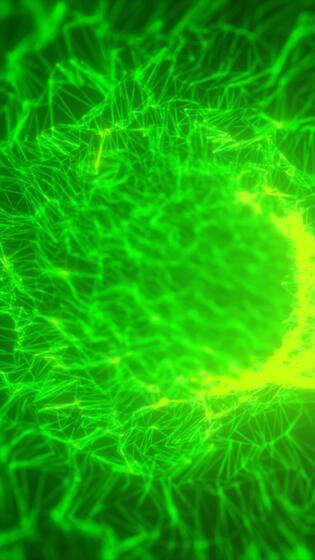 Dark background with green particle trails streaking across, creating a cosmic effect with bokeh lights Free Video