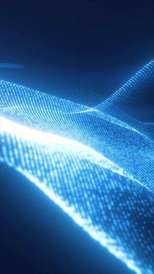 High-tech blue digital mesh forms flowing waves of data points on a dark background Free Video