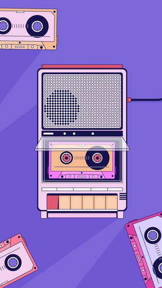 Retro cassette rotating with nostalgic tape recorder lofi vertical animation background. 80s style audio player top view. Lo fi 2D cartoon animated backdrop wallpaper 4k . Chill aesthetic Pro Video