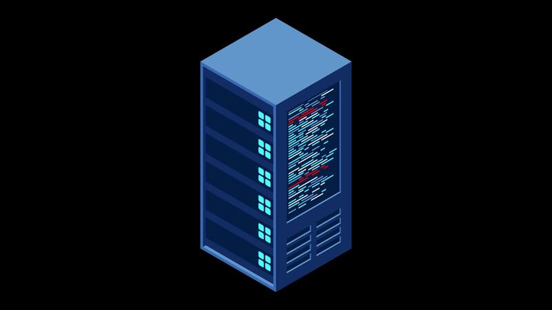Data center server box. Hosting server or data center room concept. Isometric hardware server case cabinet. 4K seamless loop animation. Transparent background with alpha channel. Pro Video
