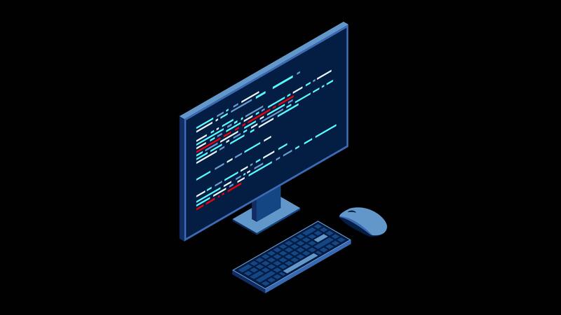Isometric desktop computer. Coding programming technology. Programming concept. Technology animation. Transparent background with alpha channel, Pro Video