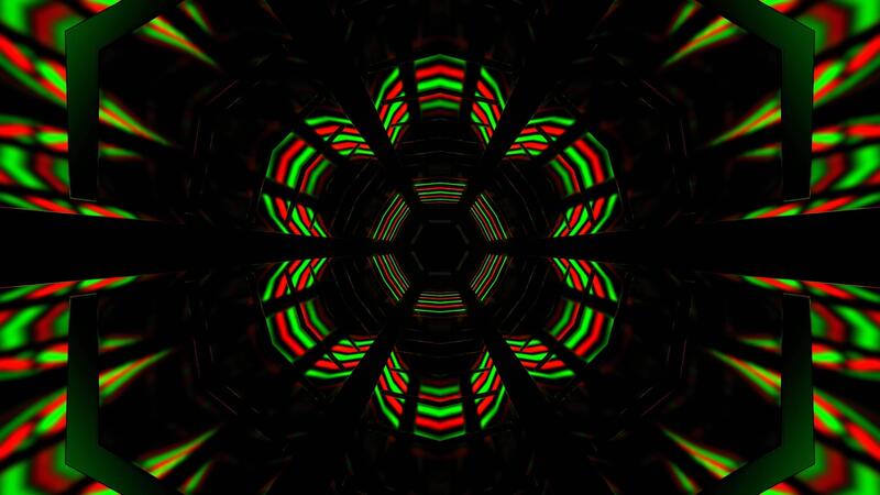 Green and Red Hexagonal Neon Mirrored Tunnel Background VJ Loop in 4K Pro Video