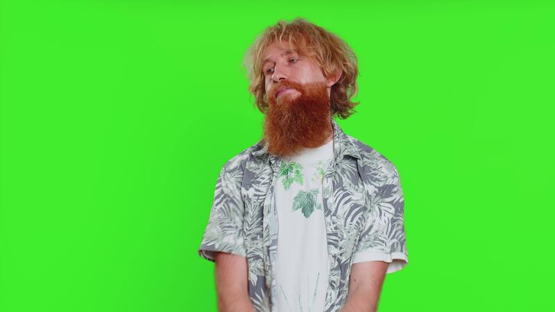 Young Caucasian man tired bored indifferent expression, exhausted of tedious story, not interested in communication talk, displeasure, uninteresting. Guy isolated on chroma key background indoors Pro Video