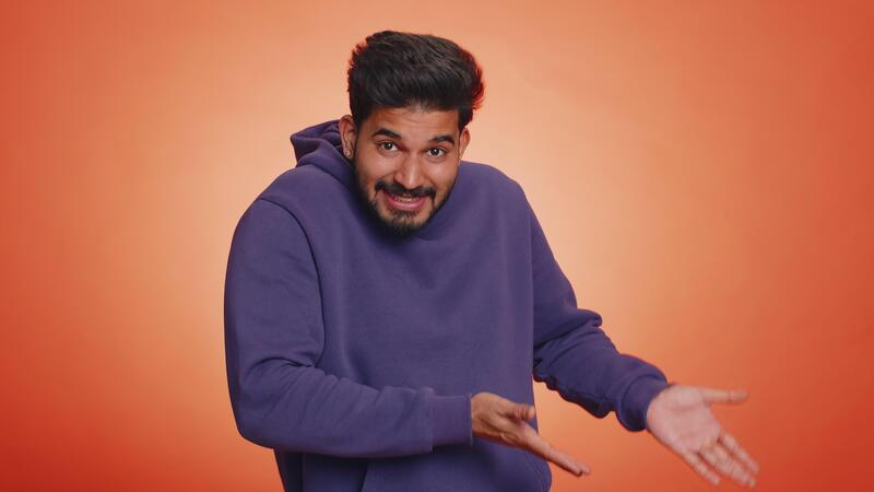 Man raising hands asking what why reason of failure, demonstrating disbelief irritation by troubles trendy social media meme anti lifehacks ridicules people who complicate simple tasks for no reason Pro Video
