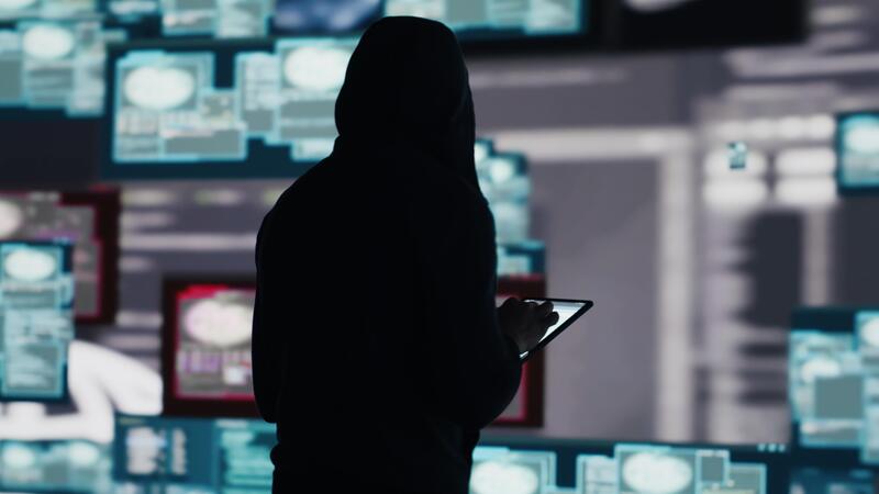 Male hacker breaking into a system in stealth mode by programming code, bypassing firewalls and exploiting vulnerabilities in network security to carry out cyber attack and infiltration. Camera A. Pro Video