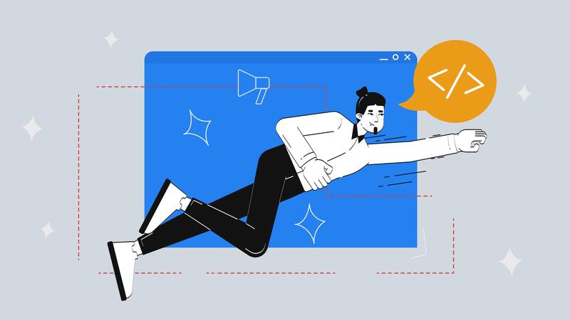 Superhero coder flying out browser window 2D animation concept. Freelance programmer superpower. Backend front end web developer hero animated cartoon flat metaphor creative 4K stop motion Pro Video