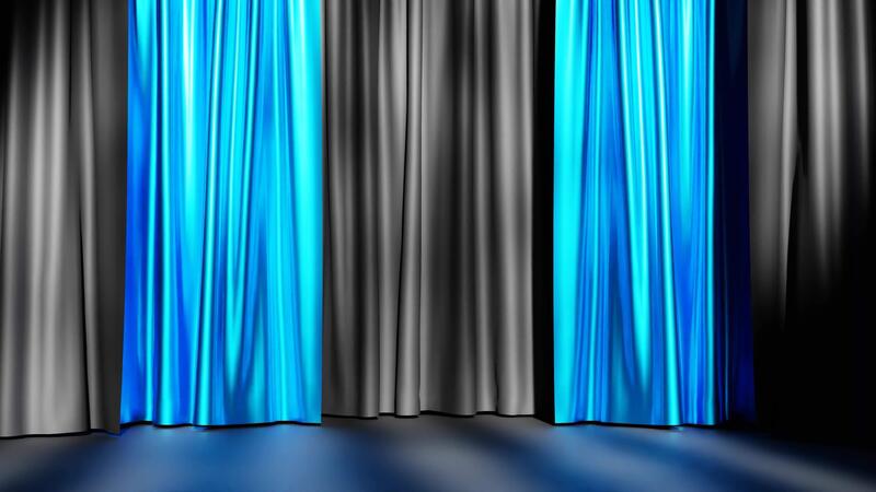 3D rendering of empty scene for product background with blue and grey curtains Pro Video